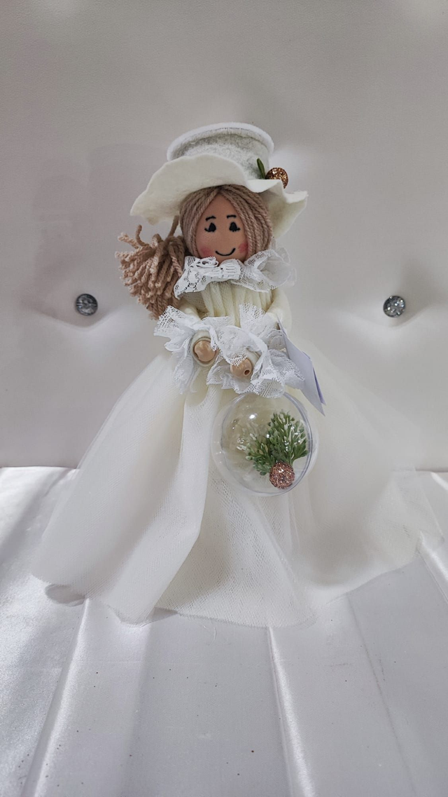 Bambolina in tessuto cucita a mano, con base in vetro.