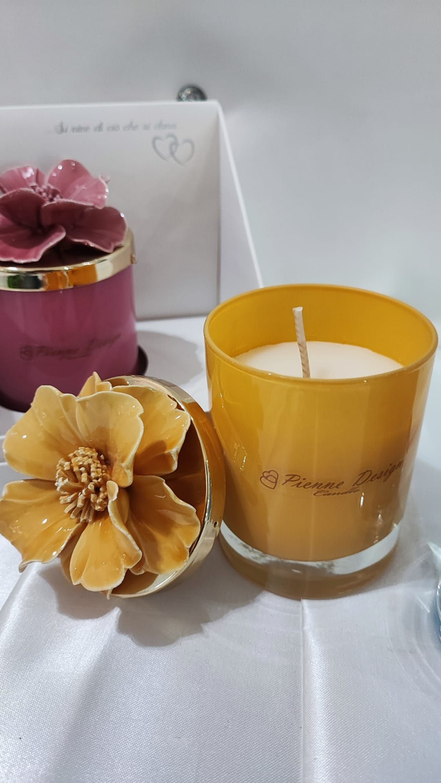 Candela con fiore ceramica lucida
