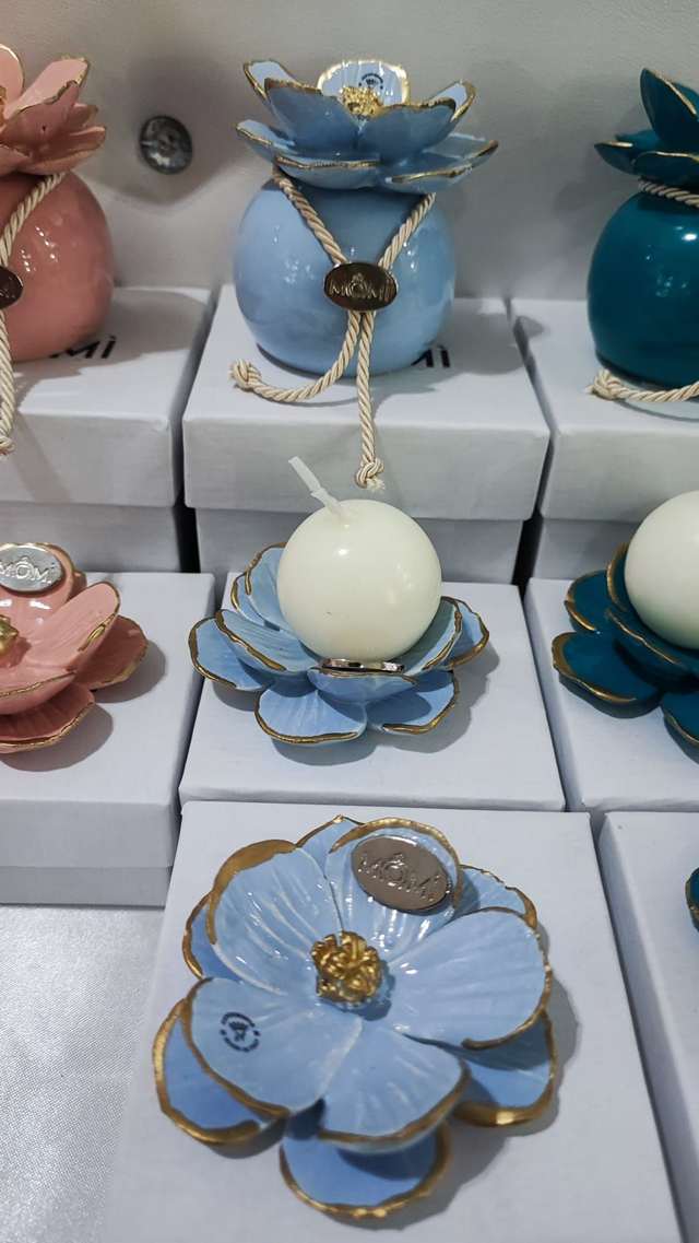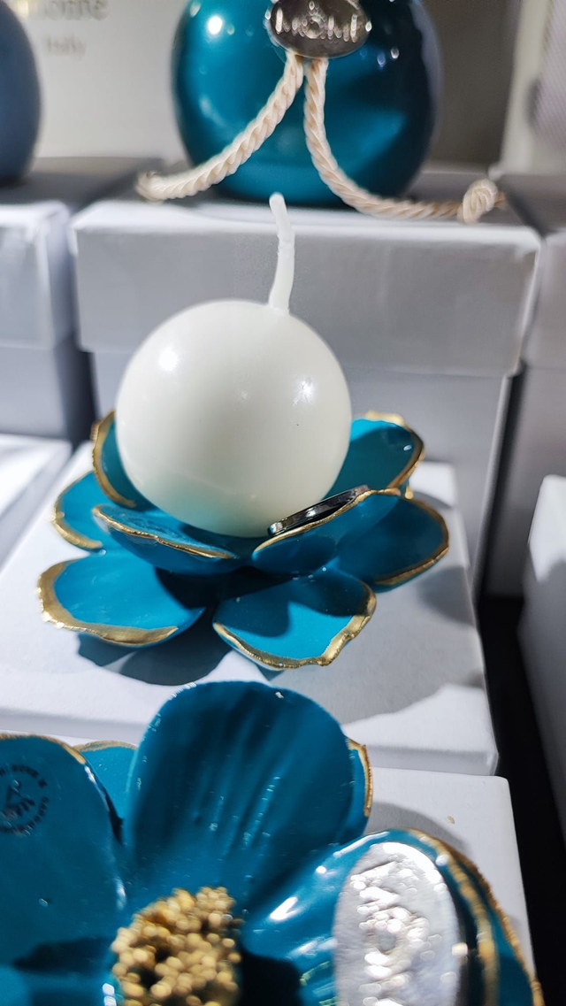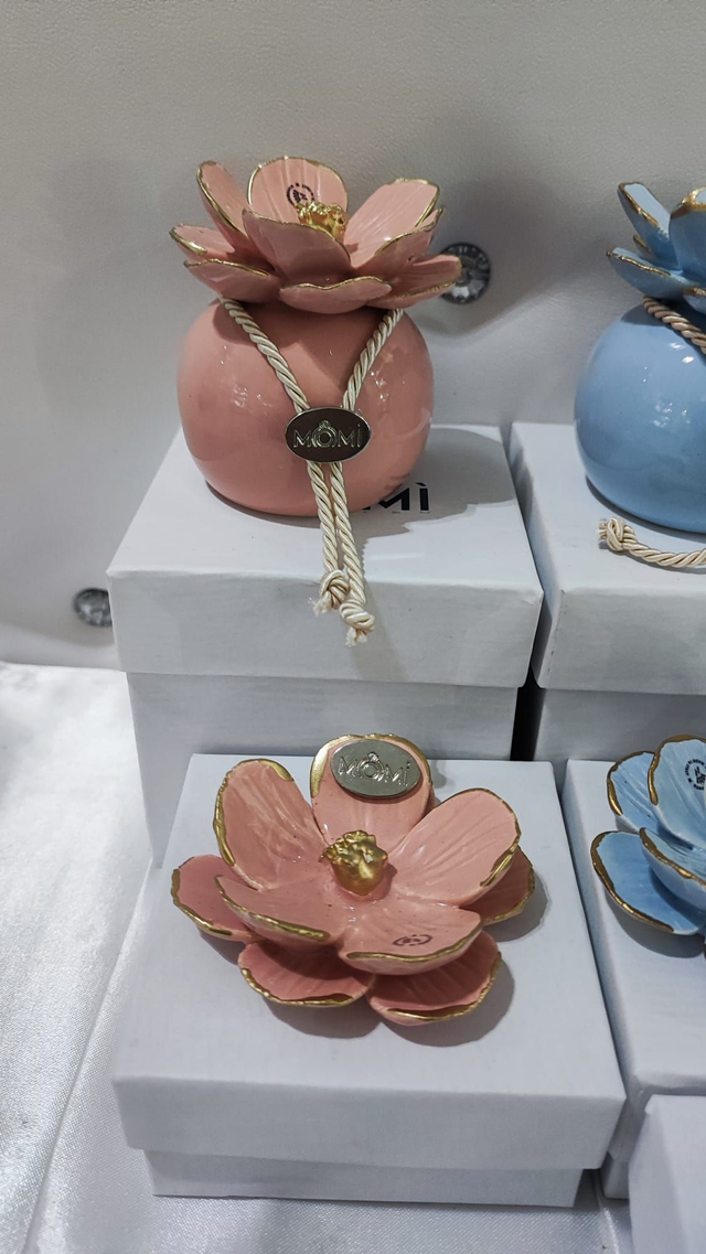 Fiore in ceramica capodimonte disponibile in vari colori con bordi in colore oro.