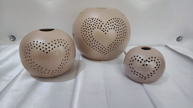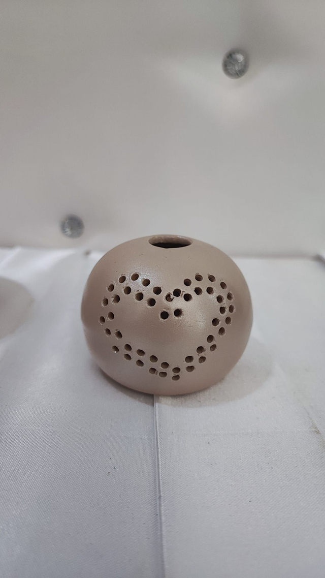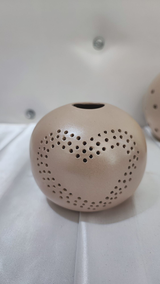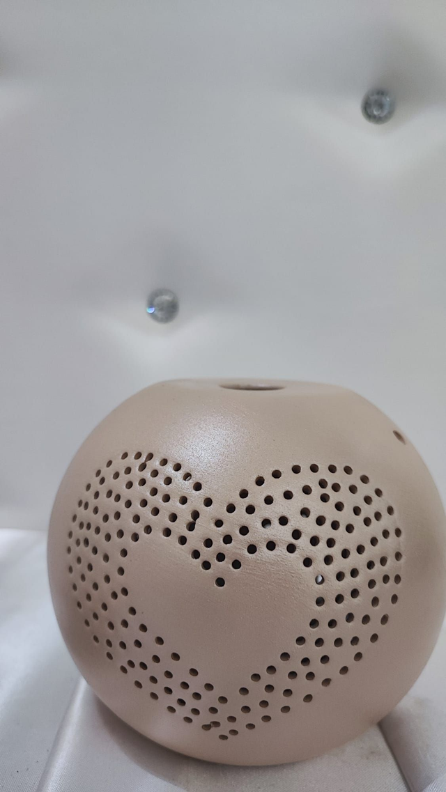 Lampada in ceramica Capodimonte con fori a forma di cuore.