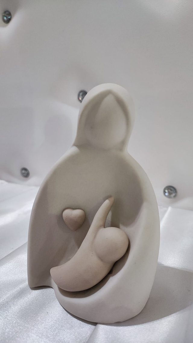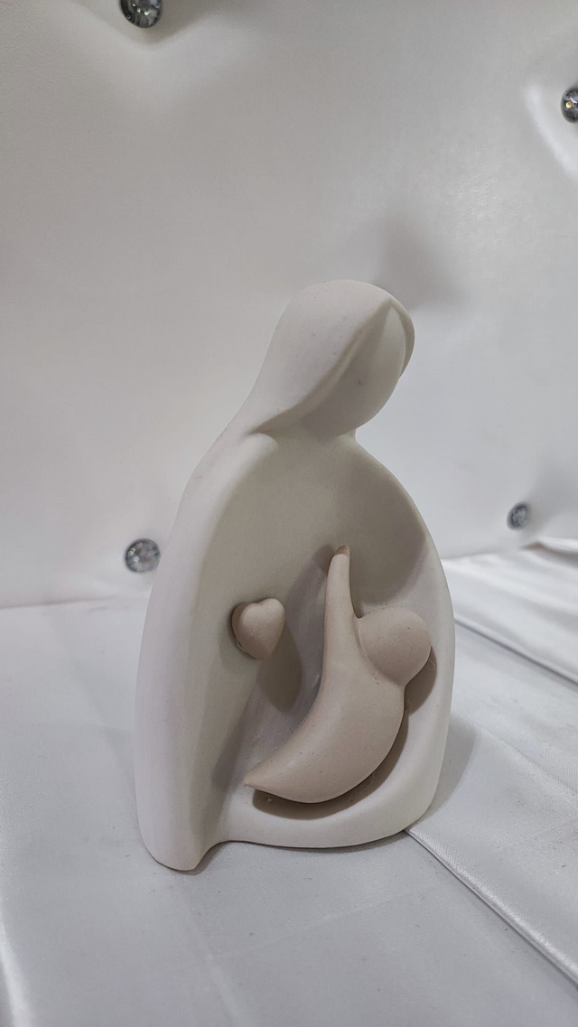 Maternità in ceramica capodimonte opaca, nei colori del bianco e beige.