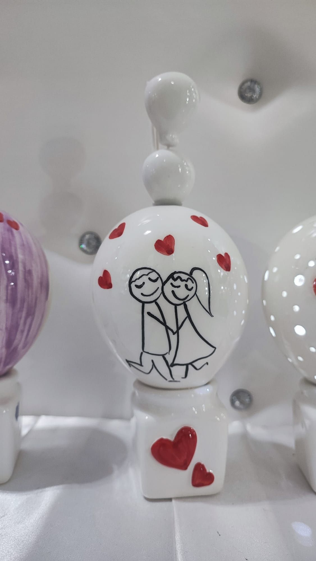 Mongolfiera in ceramica capodimonte con decoro bambini dipinto a mano.