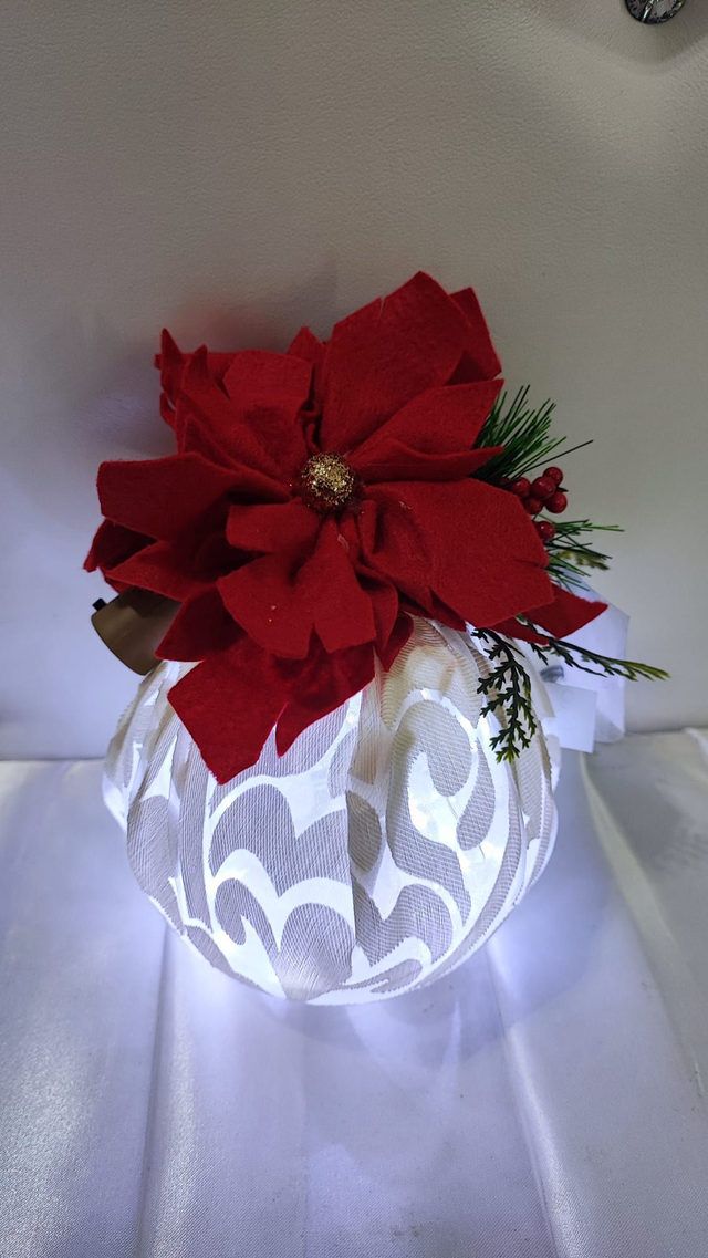 Pallina con luci led e fiori in tessuto.