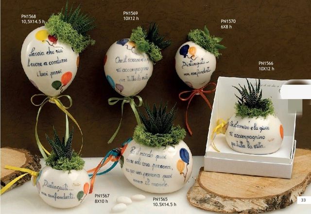 Palloncino da tavolo in ceramica capodimonte lucida con scritta e palloncini dipinti a mano.