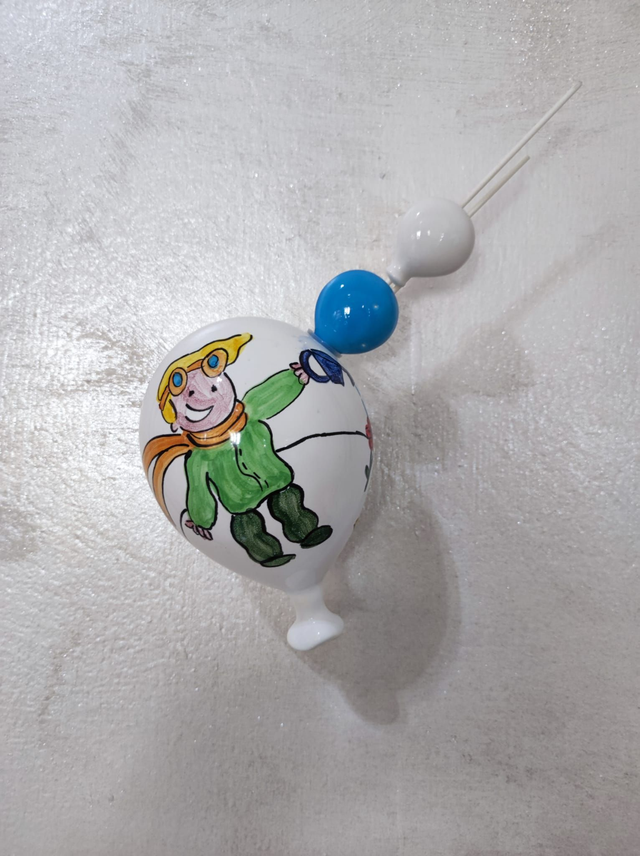 Palloncino profumatore in ceramica capodimonte con piccolo principe dipinto a mano e astine con palloncini piccoli in ceramica (presenti solo su un'astina).