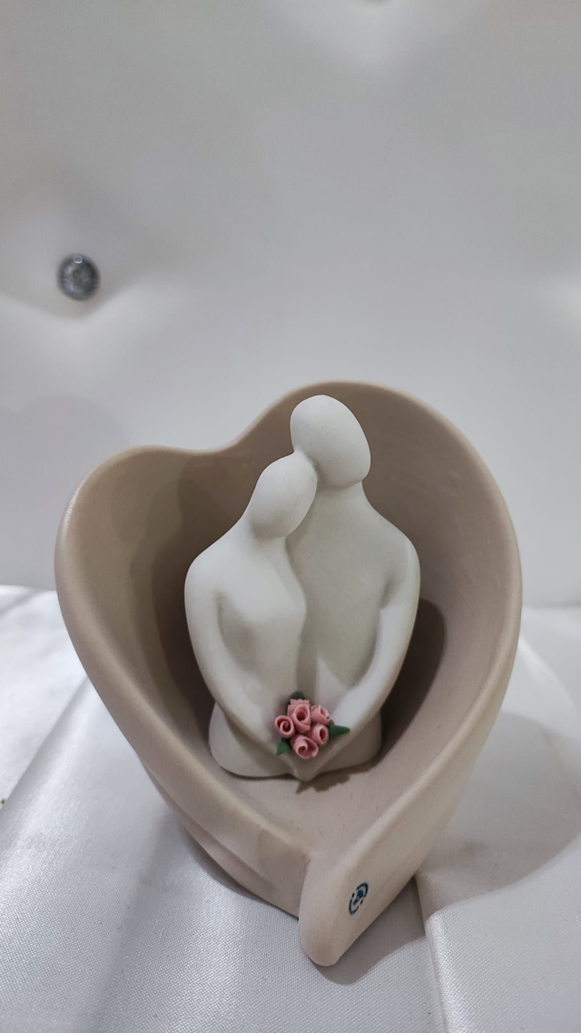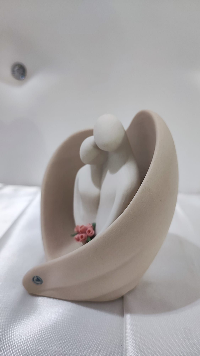 Coppia sposi in ali angelo in ceramica capodimonte opaca, nei colori del bianco e beige.